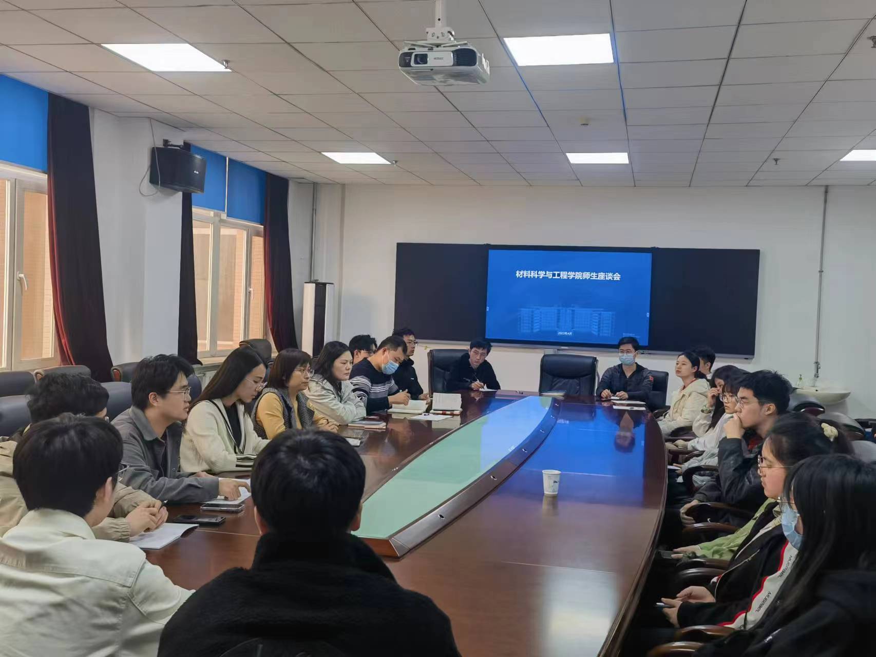 于2023年4月10日中午在南岭校区逸夫机械材料馆410会议室召开师生座谈会。澳门博彩党委副书记兼副院长华蕊老师、澳门博彩学生工作办公室全体本科生辅导员老师、澳门博彩两校区各年级学生代表参加了本次座谈会。