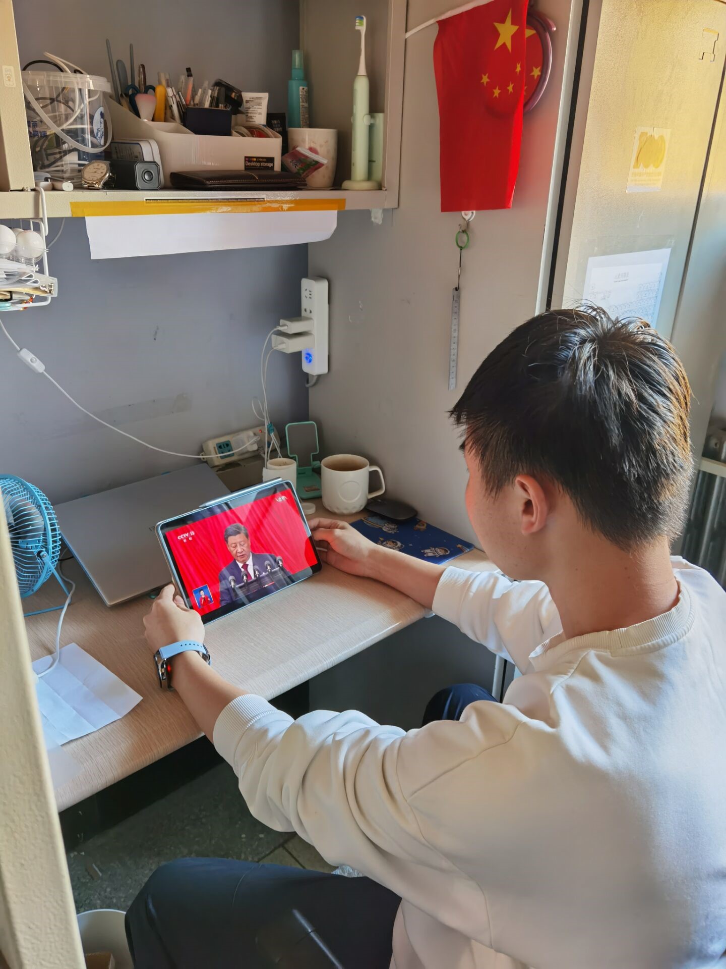 同学们跟着总书记的报告回顾了上一个五年发展阶段党的工作和新时代十年的伟大变革,又在政治、思想、民生、军事、外交等方面领会了党中央擘画的发展蓝图。总书记在报告中说到:“青年强,则国家强。当代中国青年生逢其时,施展才干的舞台无比广阔,实现梦想的前景无比光明。”这让同学们备受鼓舞,要将报告精神融入到自己的学习生活中。立志以时代为己任、以国家宏图为目标,刻苦学习,扎实工作,以一往无前的姿态全面发展,成为社会主义接班人和建设者,谱写新时代中国特色社会主义更加绚丽的华章。