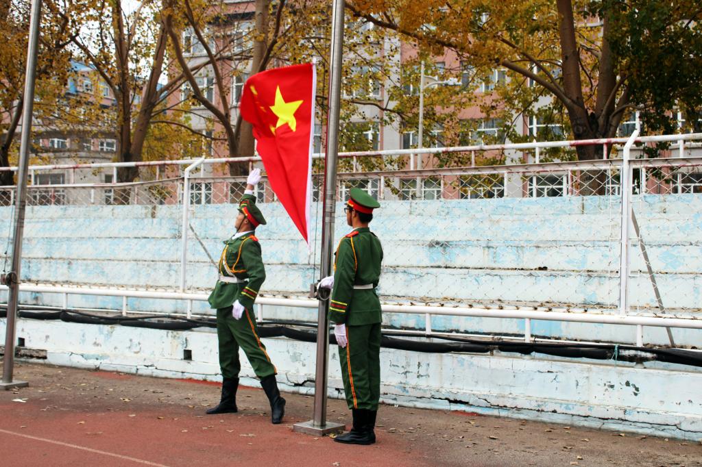 活动开始前,同学们有组织地在体育场排队,万分激动地等待着那抹红色的升起。主持人致辞完毕后,英姿飒爽的护旗队同学踏着整齐的步伐走向旗台。当庄严的国歌响起时,五星红旗随之冉冉升起。在场的每一个人都心潮澎湃,满怀对祖国无限的热爱与崇高的敬意。升旗仪式结束后,2019级优秀团员唐毅铭同学进行国旗下演讲,表达了对祖国70年来砥砺进步的自豪以及青年一代勇于肩负起中华民族伟大复兴重任的决心。活动最后,李东生书记做重要讲话,以往昔祖国发展的艰辛为例,激励同学们要好好把握新时代的机遇,努力奋进,寄托了对我院学子的无限期望。“我爱祖国,同唱国歌”升旗仪式圆满结束。